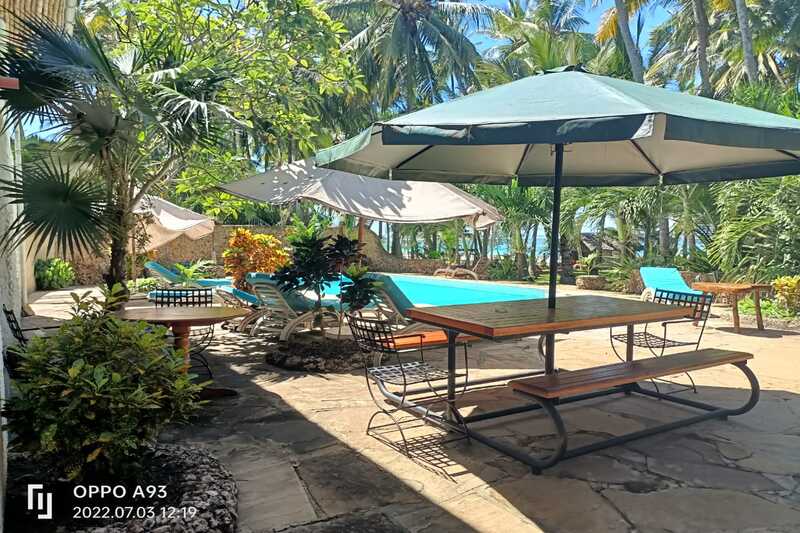 Unwind in the refreshing pool, surrounded by swaying palm trees and a serene tropical ambiance. Whether taking a relaxing dip or soaking up the sun on the poolside loungers, the peaceful setting of Kivulini Beach Villas ensures ultimate relaxation, making it a perfect retreat for couples, families, and friends.